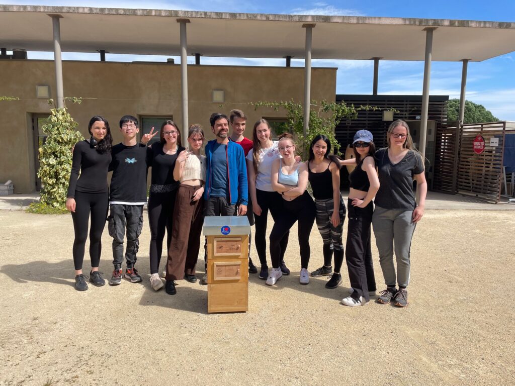 Po příjezdu do Pézenas jsme se na autobusovém nádraží přivítali s francouzskými studenty a vydali se směrem ke škole. Tam si pro nás připravili malé pohoštění, přednášku o Francii a následně jme si zahráli kvíz na Kahoot, který vyhrál pan učitel Simandl. Poté jsme šli na oběd do místní jídelny a následně měli menší volno, při kterém jsme se trochu seznámili s norskou skupinou, která se také účastnila Erasmu. Po pauze jsme se odebrali do místní dílny, ve které jsme byli rozděleni do skupin podle klíče: jeden z České republiky, jeden z Norska a tři z Francie. Měli jsem za úkol postavit hmyzí hotel ze dřeva. Jako lídři byli určeni Francouzi, kteří jsou na učebním oboru, který se tímto zabývá. Nutno podotknout, že na to příliš šikovní nebyli a stavba na náš vkus trvala příliš dlouho. Po dokončení programu jsme se odebrali na internát a ubytovali se. Po ubytování a večeři jsme se vydali prozkoumat městečko Pézenas.