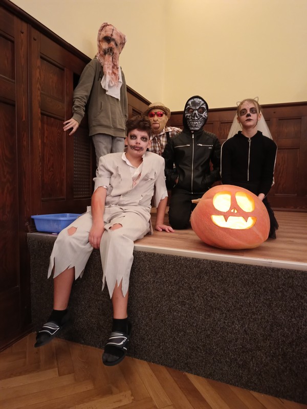 Minulý týden jsme jako každý rok společně oslavili Halloween. Dopoledne jsme se sešli v aule, kde jsme soutěžili o nejlepší masky, a večer proběhla již tradiční přespávačka, kterou výborně připravil studentský parlament. Děkujeme všem, kteří věnovali svůj čas přípravě akce a výrobě masek, které byly úžasné. Fotky vám přinášíme v galerii.
