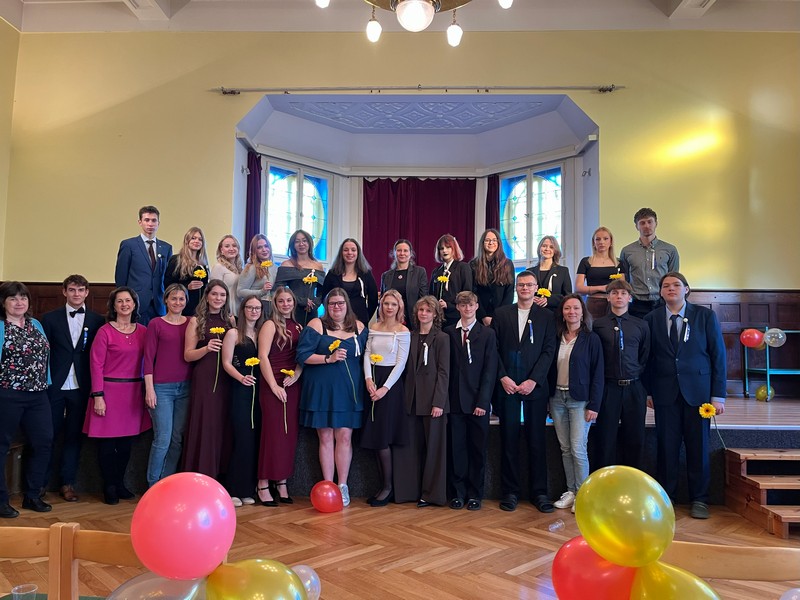 7.11. proběhlo slavnostní stužkování 4D v aule. Paní ředitelka Laubrová s dalšími učiteli přišla budoucím maturantům popřát hodně štěstí.